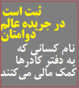 این صفحه الکترونیکی، ساعت ۵ بامداد امروز، چهارشنبه، ۲۶ فروردین ماه سال ۱۴۰۴ راهاندازی میشود تا نام کسانی را که به دفتر کادرها کمک مالی میکنند، در جریده عالم برای همیشه ثبت کند.
